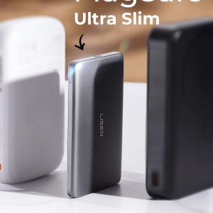 LISEN 0.3‘’ Ultra Slim MagSafe Portable Charger iPhone,Alloy 5,000mAh Wireless Charge Card Phone Charger,Slim MagSafe Battery Pack,Magnetic Power Bank for iPhone 16e Pro Max/15/14/13/12,Glacier Gray