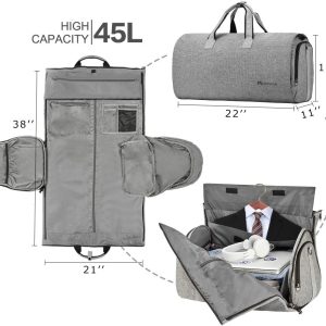 Convertible Garment Bag with Shoulder Strap, Carry on Garment Duffel Bag for Men Women – 2 in 1 Hanging Suitcase Suit Travel Bags (Grey)